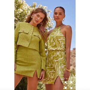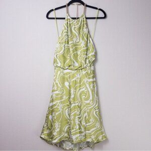 NEW ASTR The Label Quinta Retro Halter Chain Mini Dress M Celery Floral Mabel