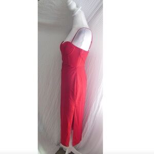 NEW ASTR The Label RED Contrast Mesh BUSTIER Stretchy COCKTAIL Midi Slit DRESS S