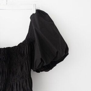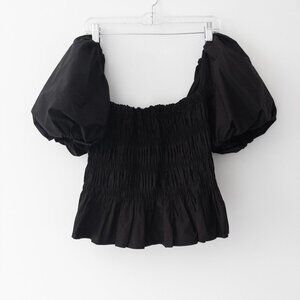 Savina Puff-Sleeve Top size small sleeves have rubber accent to hold on shoulder with organza lined sleeves to assure they are puffy.