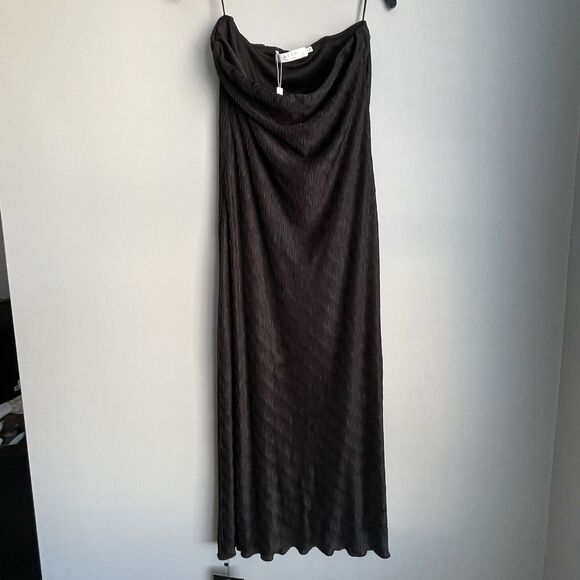 NEW ASTR The Label Strapless Textured Dress Sz L Bodycon Black Midi Formal Party