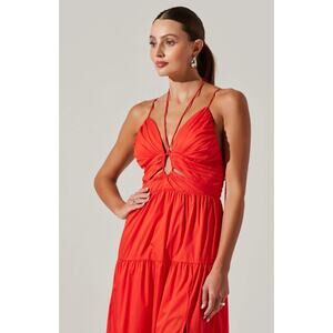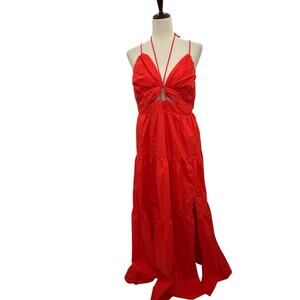 NEW ASTR the label Minka Maxi Dress Large Bright Orange Cut Out Formal Halter