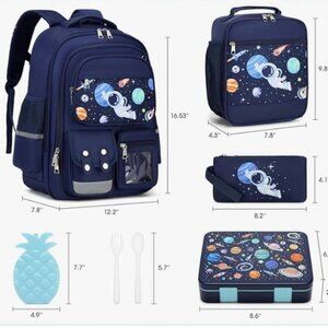 NEW ASTRONAUT BACKPACK BENTO LUNCH BOX SET 6 PCS BOOKBAG