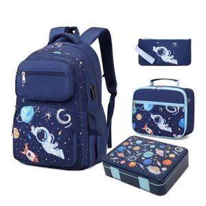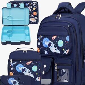 NEW ASTRONAUT BACKPACK BENTO LUNCH BOX SET 6PCS BOOKBAG