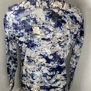 NEW AU NOIR Magnani Indigo Woven Stretch Abstract Button-Down Shirt – Size 4XL