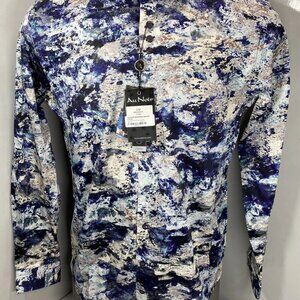 Au Noir Men's Magnani Indigo Woven Stretch Abstract Button-Down Shirt – Size 4XL – New With Tags