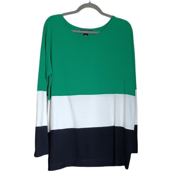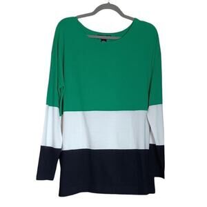NEW AUGUST SILK Lightweight Sweater Top Cotton Blend Size XL Colorblock Green