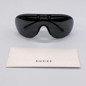 NEW AUTHENTIC GUCCI GG1656S 001, BLACK METAL OVERSIZED MASK SUNGLASSES G…