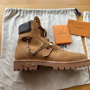 These Louis Vuitton limited edition men suede boots , are brand new by Virgil Abloh, Never worn before. They fit perfectly a size 44 US size 11.