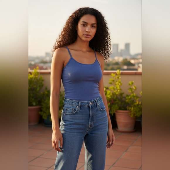 A|X blue ribbed tank top with adjustable straps.