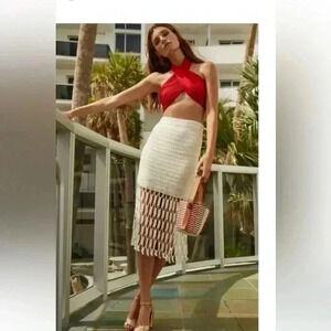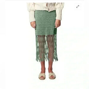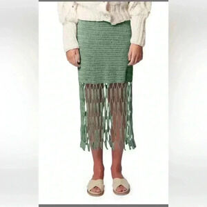 NEW AYNI Tarania Crochet Lined Open Stitch Fringe Skirt Mint Green Size Medium