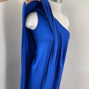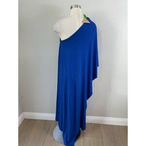 NEW Aakasha Womens Medium Blue One Shoulder Asymmetrical Maxi Dress