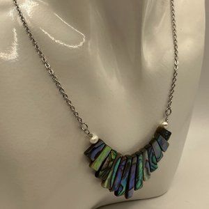 NEW Abalone Paua Graduated Shell + Pearl Necklace up to 18 inch Stainless Steel