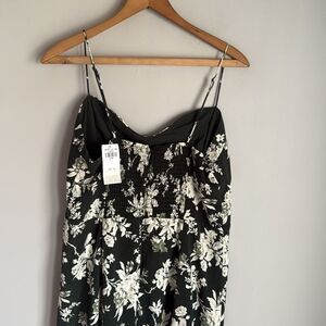 NEW Abercrombie & Fitch High-Slit Midaxi Dress green floral Large