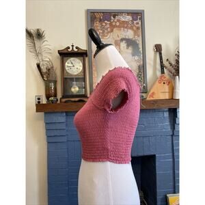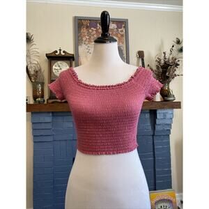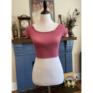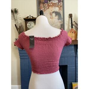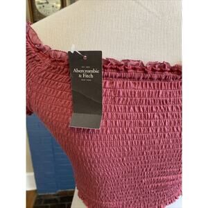NEW Abercrombie & Fitch Top Womens XS Pink Off The Shoulder Smocked Crop Shirt