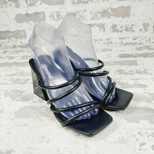 NEW Abound Austyn Black Square Open Toe Tubular Strappy Heeled Sandals M250