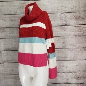 Abound Nordstrom S Turtleneck Cowl neck Pullover Sweater in Red Tango Sarah Striped NWT