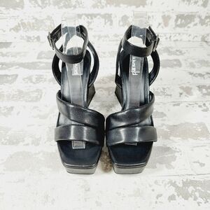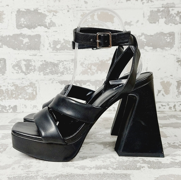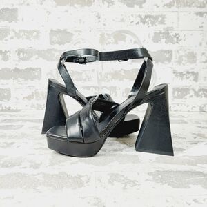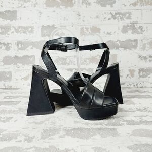 NEW Abound Tracy Black Faux Leather Open Toe Ankle Strap Heeled Sandals V449