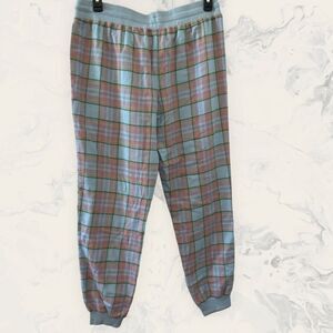 Abound Women's Flannel Pajama Pants Blue Plaid Print Drawstrings Size L
