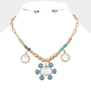 NEW Abstract Turquoise Pearl Stone Golden Chain Necklace