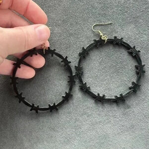 NEW Acrylic Barbed Wire Earrings Hoops black dangle