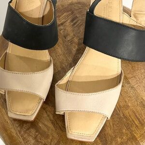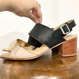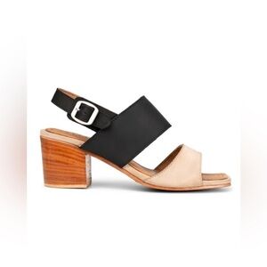 NEW Adelante The Serena Leather Heeled Sandal in Oatmeal and Black 9 B