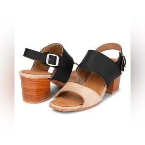 Adelante NEW The Serena Leather Heeled Sandal in Oatmeal and Black 9 B