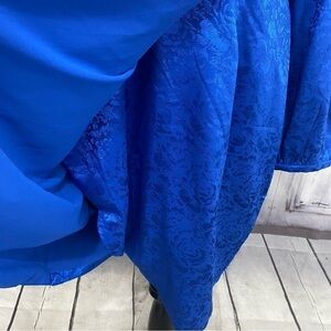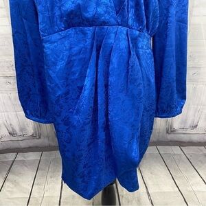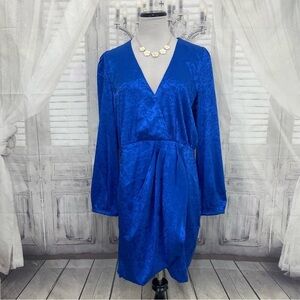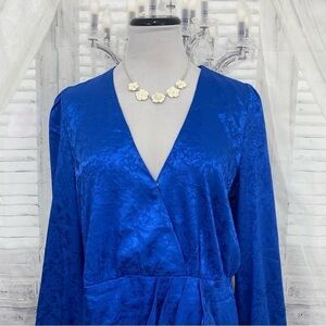 Adelyn Rae Size XL Cobalt Blue Floral V Neck Wrap Dress Long Sleeve Brocade