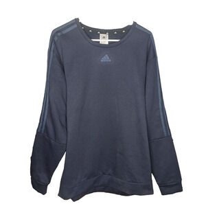 NEW Adidas Blue Crew Neck 3 Stripe Fleece Men's Sweatshirt Size XL Soft Gift