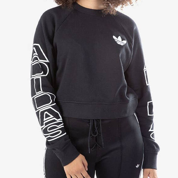 NEW Adidas Cropped Letter Logo Crewneck Sweatshirt Black White Size XLarge XL