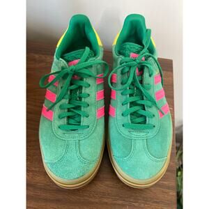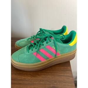 NEW Adidas Gazelle Bold Suede Leather Logo Wedge Sole Sneakers Green Size: 7.5