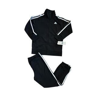 NEW Adidas Kids Track Suit Jacket Pants Set Black White Size 7 Boy