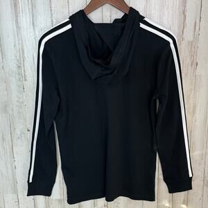 NEW Adidas Long Sleeve Hoodie Shirt Youth M Black White Stripe Pullover Active