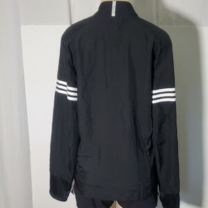 The Adidas Black windbreaker Jacket combines sleek design with functionality, featuring a stand-up collar and full-zip front closure. Crafted from performance materials, this jacket is perfect for both athletic activities and casual wear. Its fitted cut and iconic Adidas stripes add a modern touch to your wardrobe. Please see all photos for details 💥Reasonable offers welcome 💥BUNDLE DISCOUNT OF 15% WITH 3 OR MORE ITEMS!!.,, # J,, 6