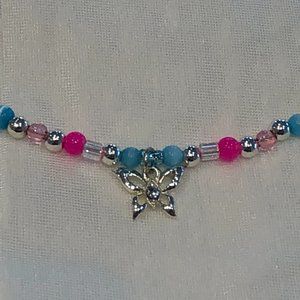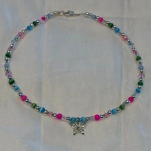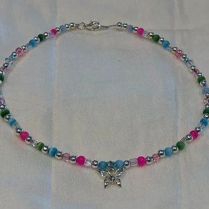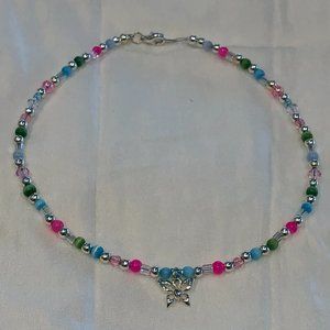 NEW. Adorable Beaded Choker Necklace w a Fluttering Butterfly Charm