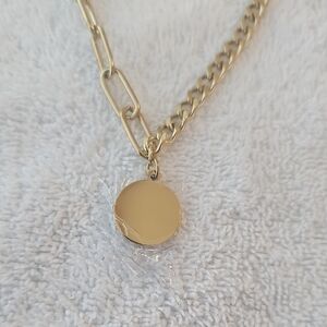 NEW Adornia Water Resistant Mixed Gold Chain Necklace with Coin Pendant
