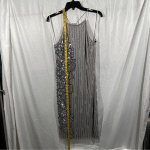 NEW Adrianna‎ Papell [ 4 US ] Floral Beaded Midi Dress in Bridal Silver