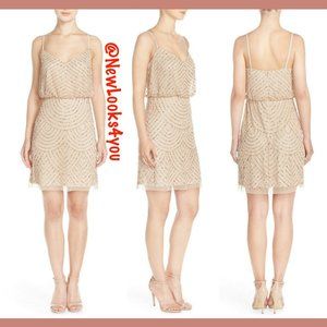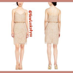 NEW Adrianna Papell Art Deco Sequin Blouson Dress in Champagne/Gold [SZ 0 2 14 ] N379