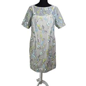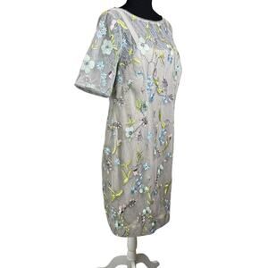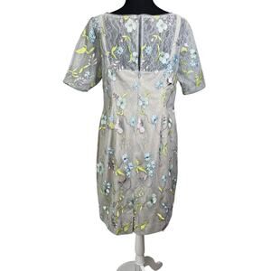 NEW Adrianna Papell Beaded Sheath Dress Size 14W Embroidered Floral Lace Gray