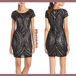 NEW Adrianna Papell Beaded Sheath Dress in Black Nude [SZ 10 ]