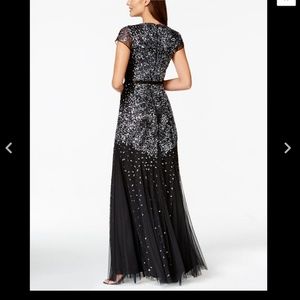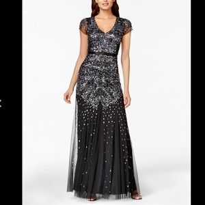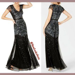 NEW Adrianna Papell Cap-Sleeve Beaded Gown in Black/Gunmetal [SZ 2 ]