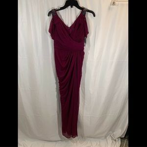 NEW Adrianna Papell Draped Cold Shoulder Gown in Pomegranate [SZ 2 ]