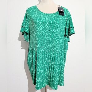 NEW Adrianna Papell Emerald Double flutter sleeve top blouse Womans Size 1X