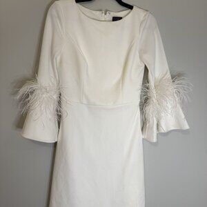 NEW Adrianna Papell Feather Cuff Bell Sleeve Dress Ivory Size US 2 [jb]