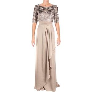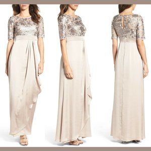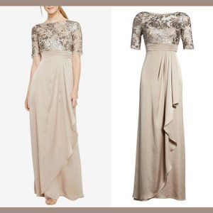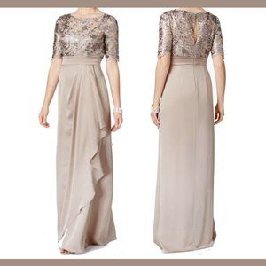 NEW Adrianna Papell Floral Sequin Embroideredโ Gown in Light Mink [SZ 4 ]