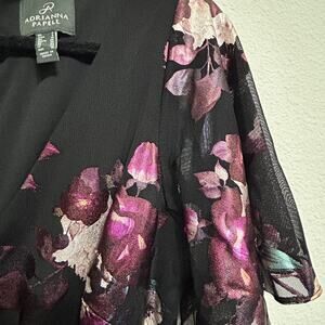 NEW Adrianna Papell Foil Floral Stretch Mesh Flutter Sleeve Front Midi Dress 6
