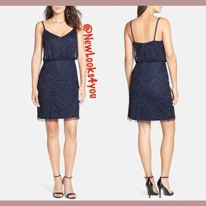 NEW Adrianna Papell Sequin Mesh Blouson Dress Navy/Black [SZ 8 ] #N171