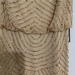NEW Adrianna Papell Sequin Mesh Blouson Dress‎ in Champagne Gold [SZ 10 ]