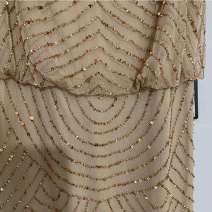 NEW Adrianna‎ Papell Sequin Mesh Blouson Dress in Champagne Gold [SZ 12 ]