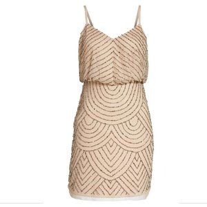 NEW Adrianna Papell Sequin‎ Mesh Blouson Dress in Taupe Pink [SZ 2 ]