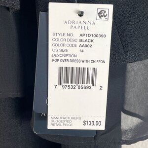 NEW Adrianna Papell Womens 14 Pop Over Tiered Dress Chiffon Black Sleeveless
